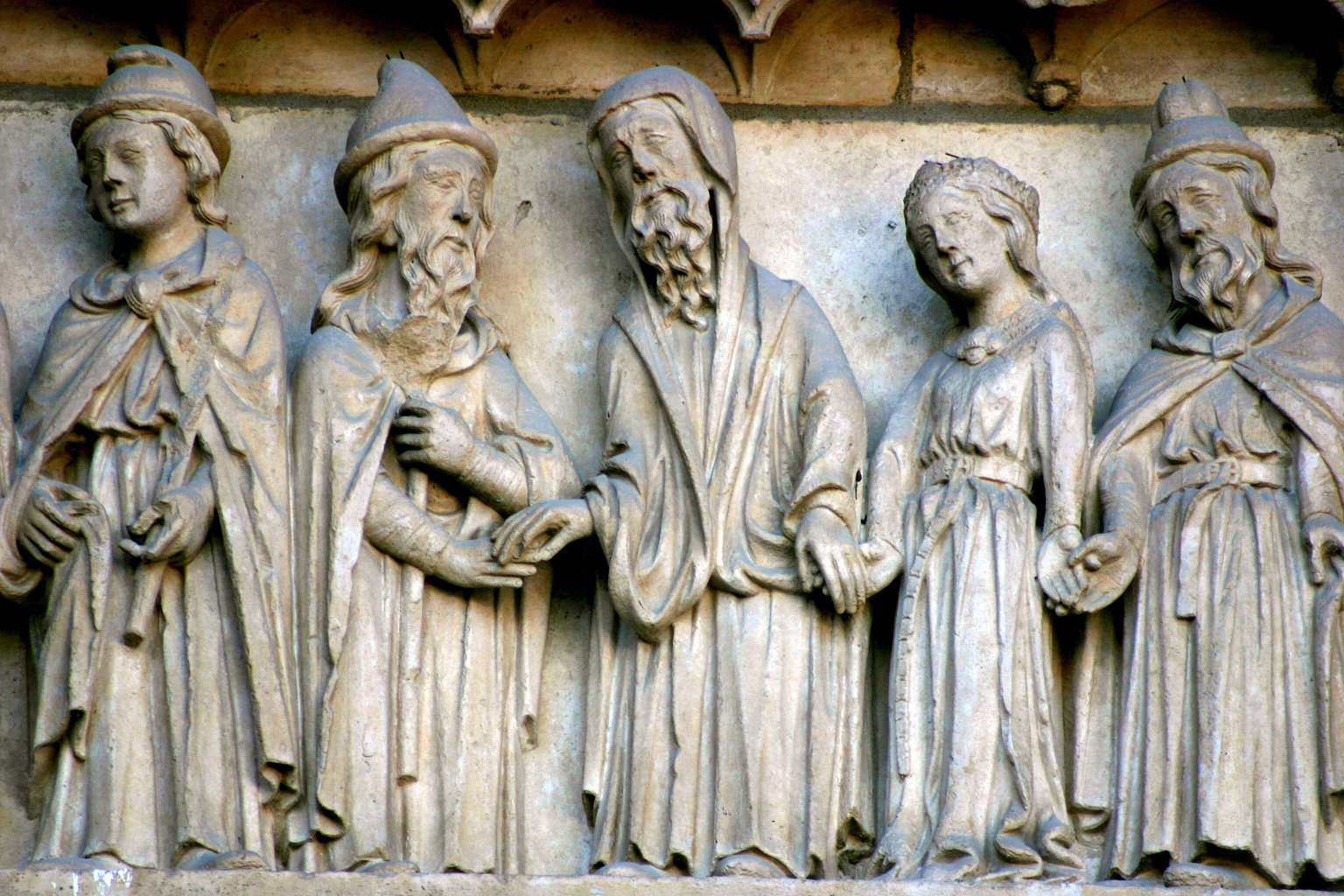 Sur le tympan de Notre-Dame, le Grand Prêtre relie Joseph à Marie en les tenant par la main, il est ainsi l’intermédiaire entre les époux et Dieu, ce qui évoque la bénédiction nuptiale du mariage. Si le mariage n’est pas mentionné dans les évangiles, il est précisé que Marie est fiancée à Joseph (Mt 1, 18 ; Lc 1, 27) et que Joseph est mentionné comme son mari alors qu’il apprend qu’elle est enceinte (Mt 1, 19). C’est par les fiançailles que Joseph et Marie se sont engagés à vivre ensemble. Le mariage, qui n’a pas toujours été un sacrement ni même une cérémonie religieuse, est une reconnaissance des fiançailles ; c’est donc au moment du mariage que les époux peuvent vivre sous le même toit.